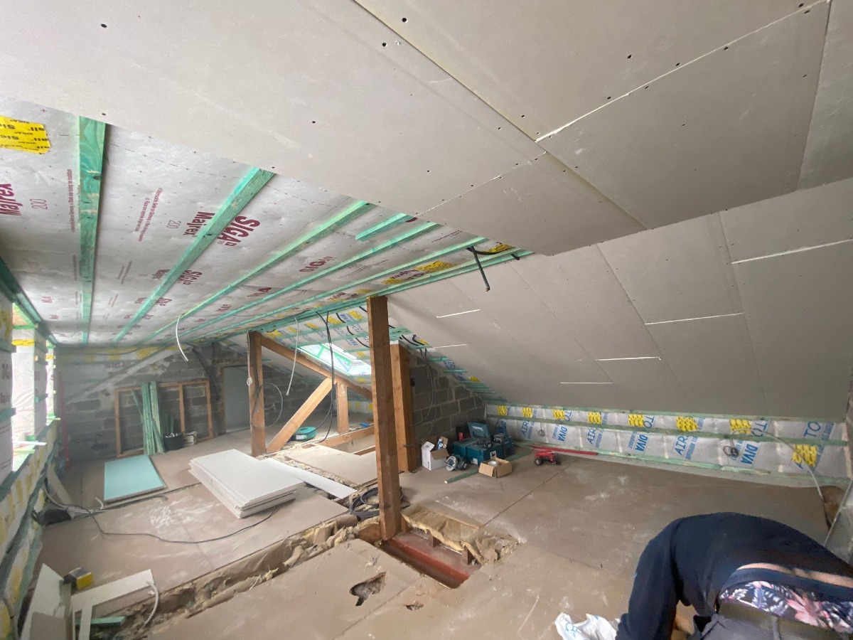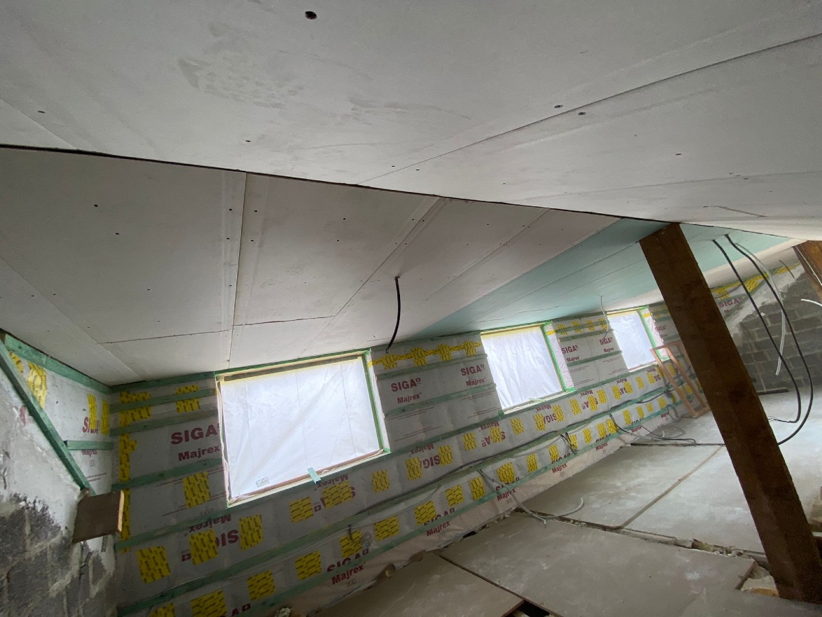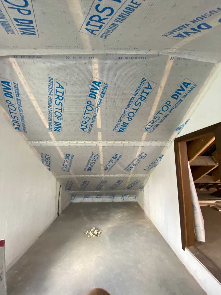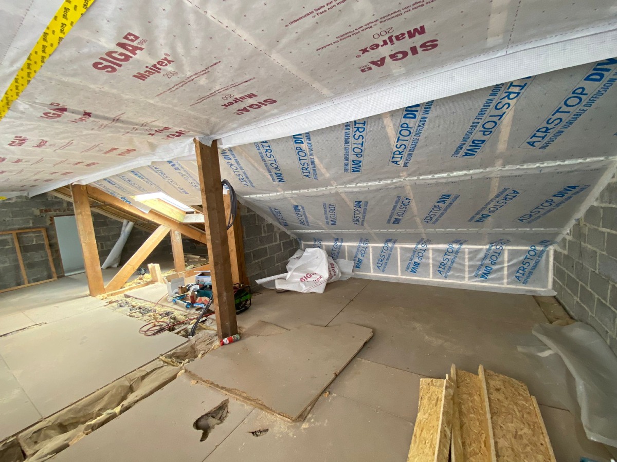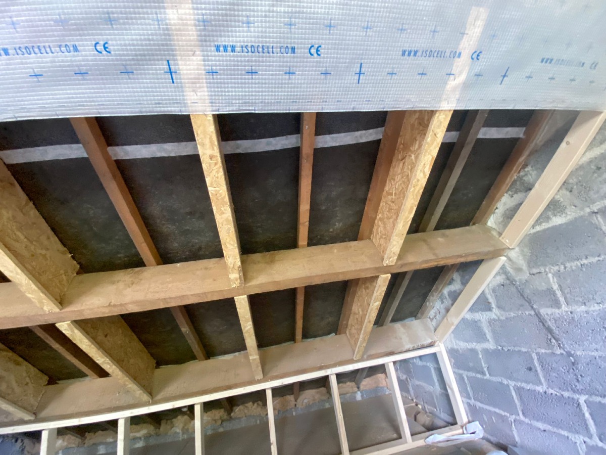 Travaux d'isolation de la toiture et du plafond des caves réalisés par IB+.